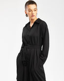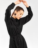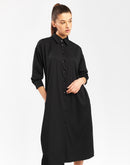 Suknelė – marškiniai, sagstomi sagomis, su kišenėmis ir diržu.