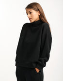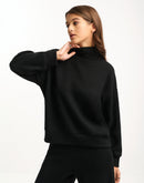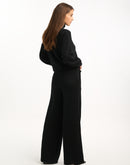 Dviejų dalių, minkšto audinio laisvalaikio kostiumas. Kostiumą sudaro laisvas golfas ir platėjančios kelnės su kišenėmis.